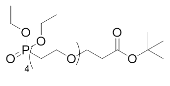t-Butyoxycarboxy-PEG4-phosphonic acid ethyl ester features a molecular mass of 442.5 and is described by the chemical formula C19H39O9P. This compound consists of the functional groups phosphonic acid, acid, and ester.